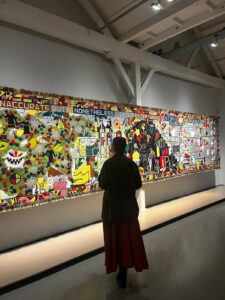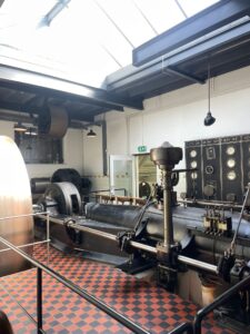 To our surprise, we then moved into the textile lab where modern technology was used to produce colorful tapestries, amongst other things. Upon entering this space, we were a bit disoriented from the abrupt transition from historic to new, and we were not quite sure if the textile lab was even meant for us to enter. The museum collaborates with various artists, and it is in this space that those artworks were being brought to live. The textile lab allowed an insight into how knitting and weaving machines functioned while the art exhibition next to it showed what these machines could produce, showing the complex artforms that could emerge from a very standard looking machine. We were not only impressed by the craftmanship exhibited, but also by how the exhibitions were curated and presented to us, creating spaces that were really letting the works shine.